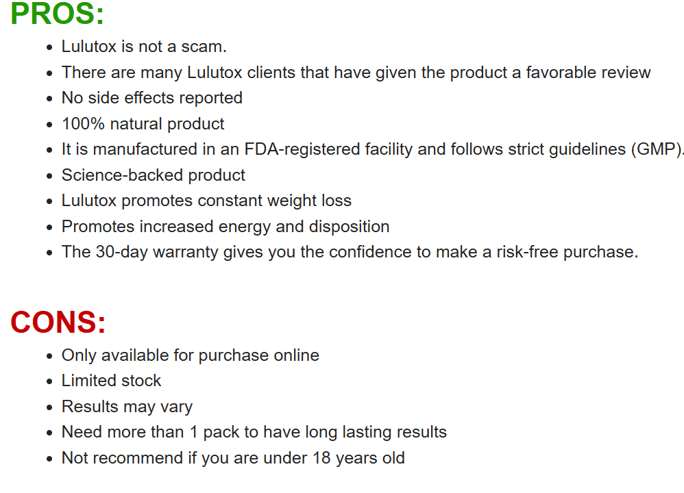 Considering the popularity and success of Lulutox, it might be the game changer that obesity-ridden people need for a long time. The Lulutox works gently and helps the body transform with no stimulatory and jittery effects. The customer reviews suggest that they experienced better stamina and strength, which is not something typical weight loss methods offer. Knowing this, going back to the fad diets and hours-long workout sessions sounds like a bad idea when you can get the same results from a basic lifestyle change and Lulutox.
